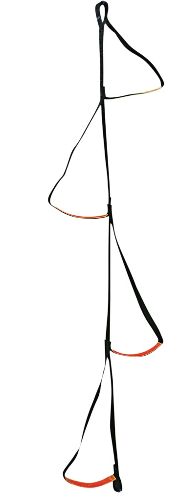 Klasyczna ławka do hakówki Loop L to czteroszczeblowa ławka do hakówki. Całość wykonana jest z 25 mm taśmy poliamidowej, dodatkowo