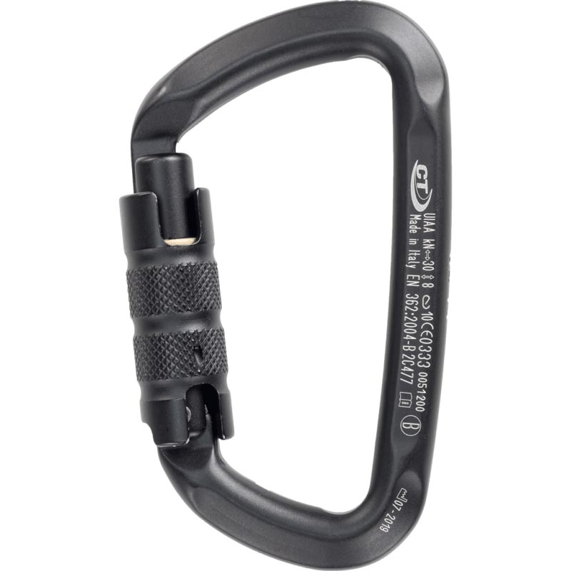 TG to wyjątkowo bezpieczny zamek automatyczny typu triplex. Wymaga trzech ruchów do odblokowania (podniesienie + przekręcenie + naciśnięcie), dzięki czemu spełnia wymagania przemysłowej normy EN 362. Dzięki swojej ultrabezpiecznej charakterystyce świetnie sprawdzi się w najbardziej złożonych systemach, a także w arborystyce. Specjalne żłobienia na zakrętce ułatwiają manipulację zamkiem, także w rękawiczkach lub podczas deszczu. Mechanizm zakrętki jest bardzo trwały oraz precyzyjnie zabezpieczony przed zanieczyszczeniami. Dostępne są też inne wersje zamków.