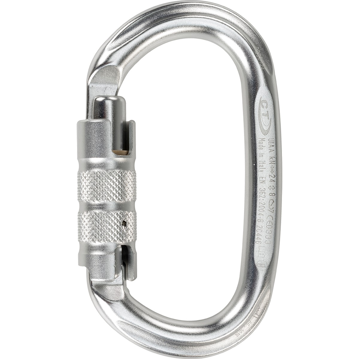 TG to wyjątkowo bezpieczny zamek automatyczny typu triplex. Wymaga trzech ruchów do odblokowania (podniesienie + przekręcenie + naciśnięcie), dzięki czemu spełnia wymagania przemysłowej normy EN 362. Dzięki swojej ultrabezpiecznej charakterystyce świetnie sprawdzi się w najbardziej złożonych systemach, a także w arborystyce. Specjalne żłobienia na zakrętce ułatwiają manipulację zamkiem, także w rękawiczkach lub podczas deszczu. Mechanizm zakrętki jest bardzo trwały oraz precyzyjnie zabezpieczony przed zanieczyszczeniami. Dostępne są też inne wersje zamków.