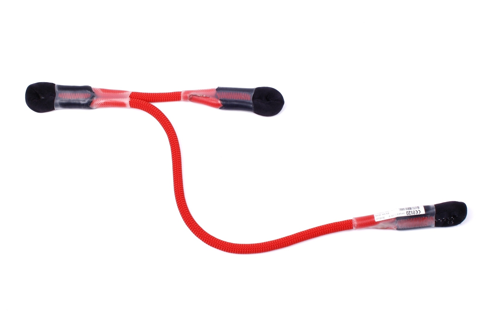 Zakończenia linki zostały odpowiednio przeszyte dla zapewnienia maksymalnego bezpieczeństwa. Dodatkowo, producent zdecydował się umieścić je w plastikowej otulinie, która chroni włókna przed tarciem i czynnikami zewnętrznymi. Osłonka jest przezroczysta, znacząco ułatwiając inspekcję szwów.