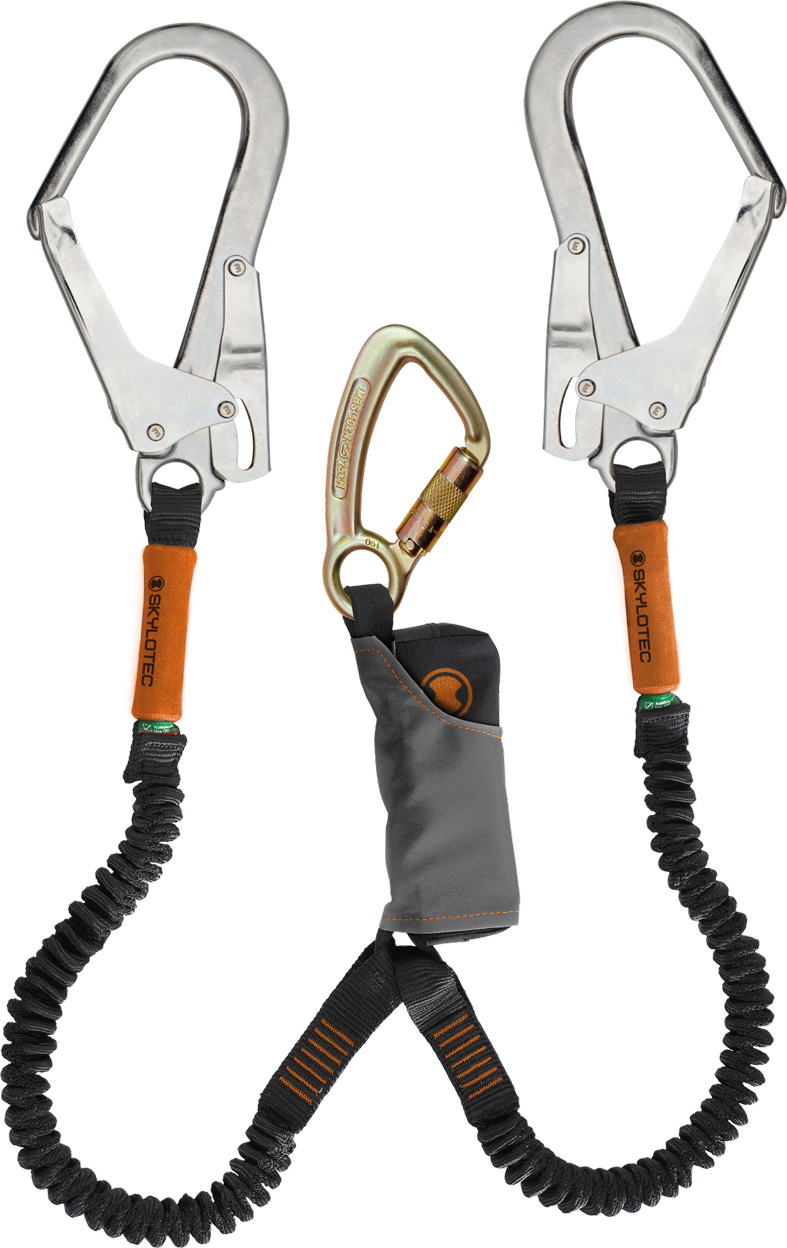Innowacyjny absorber energii Absorber użyty w modelach Skysafe to zupełnie nowa konstrukcja zapewniająca maksimum bezpieczeństwa podczas pracy. Obsługuje on szeroki zakres mas (od 50 kg do 140 kg) i niezależnie od wagi użytkownika zawsze utrzymuje siły działające na ciało na poziomie poniżej 6 kN. W połączeniu z maksymalną długością rozerwania absorbera wynoszącą 175 cm lonże z grupy Skysafe z nawiązką spełniają wymagania właściwych norm EN. Absorber schowany jest w estetycznym, trwałym pokrowcu a jego połączenie z uprzężą zapewnia stalowy, trzyakcyjny karabinek automatyczny Kobra TRI o niehaczącym nosku.