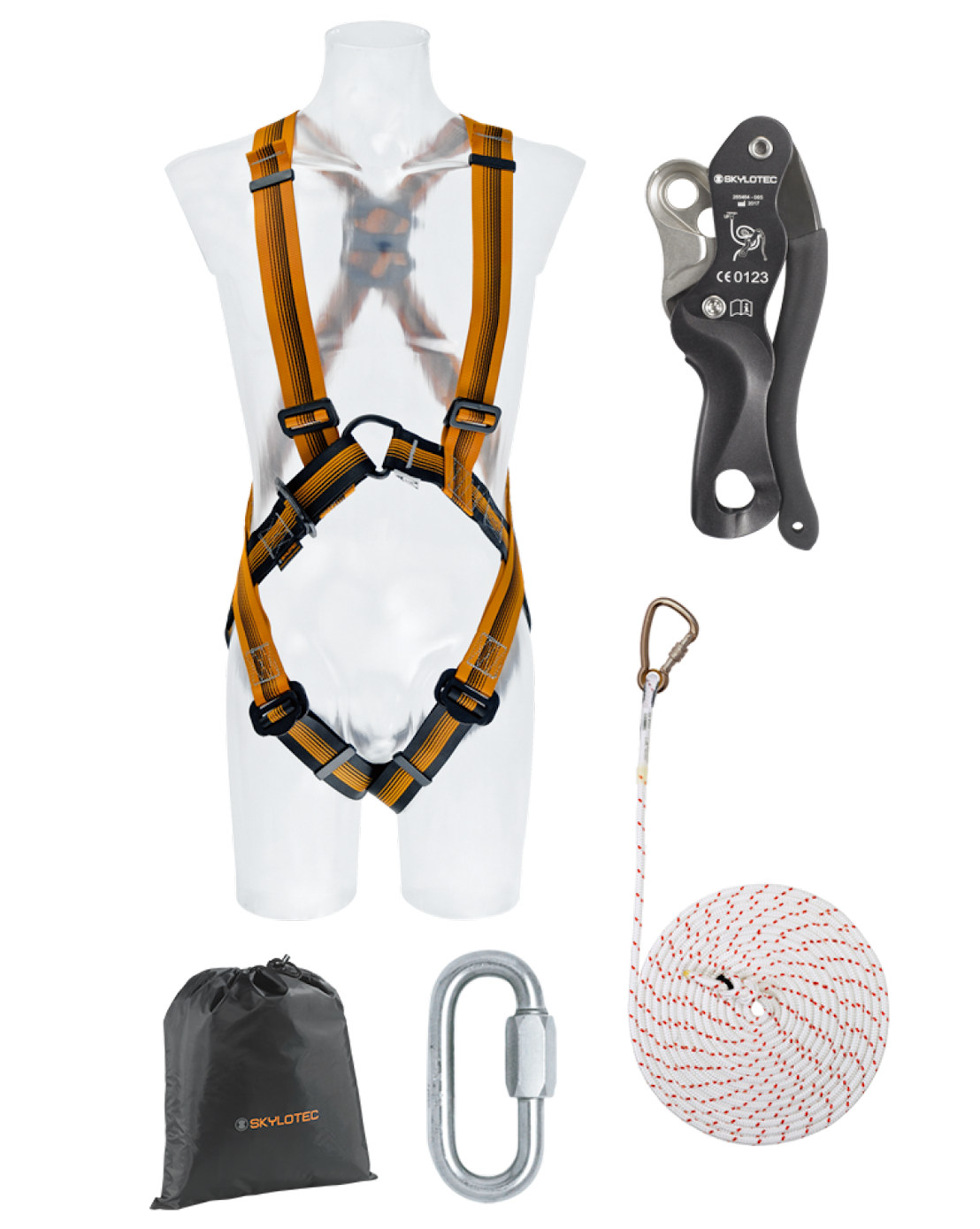 Set zapewnia kompletne elementy niezbędne do przeprowadzenia skutecznej akcji autoratowniczej podczas pracy na podnośnikach koszowych lub w magazynach wysokiego składowania. Zestaw jest szybki prosty w użyciu, także w sytuacji podwyższonego zagrożenia. Nieużywany, może być bezproblemowo składowany w dołączonym worku.